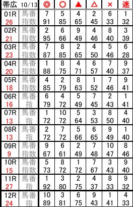 帯広 10/13 予想