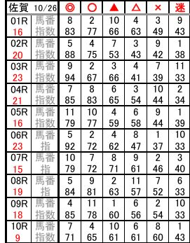 佐賀 10/26 予想
