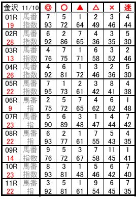 金沢 11/10 予想