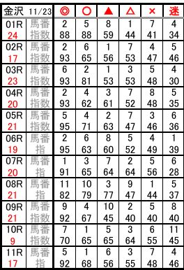 金沢 11/23 予想
