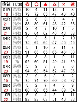 佐賀 11/30 予想