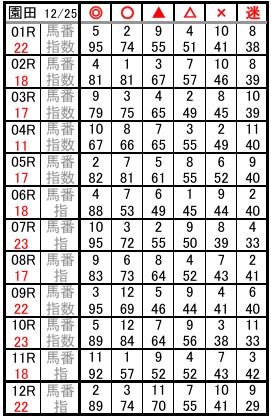 園田 12/25 予想