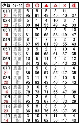佐賀 01/29 予想