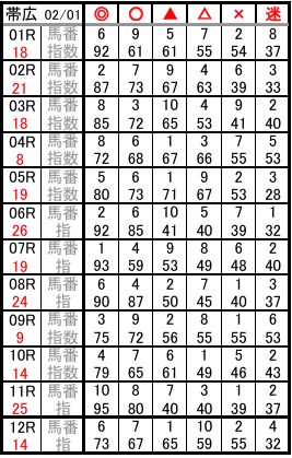 帯広 02/01 予想