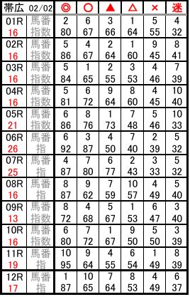 帯広 02/02 予想