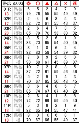 帯広 02/23 予想
