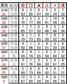 HOME > 地方競馬 > 地方競馬 2026年2月3日 高知競馬予想 投稿日:2026年2月3日 高知 02/03 予想 01R 6.5.8.2.3.7 02R 6.2.3.1.10.4 03R 1.7.2.6.3.5 04R 6.1.8.7.9.3 05R 4.1.5.9.3.6 06R 6.4.1.5.2.3 07R 3.1.2.5.4.6 08R 2.8.6.4.9.7 09R 12.5.2.4.8.11 Twitter Share Google+ Pocket B!Hatena LINE -地方競馬