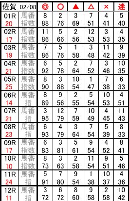 佐賀 02/08 予想