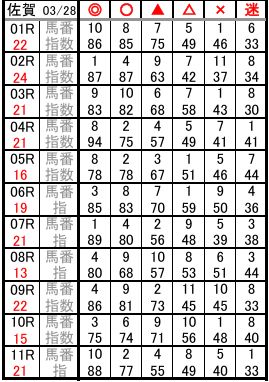 佐賀 03/28 予想
