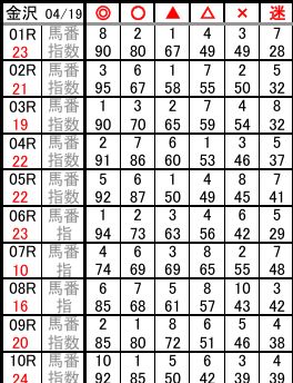 金沢 04/19 予想