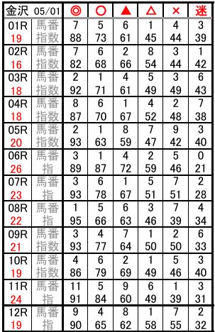 金沢 05/01 予想